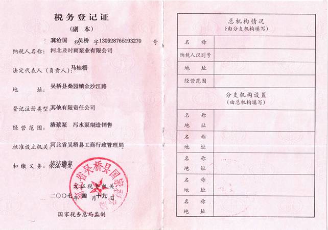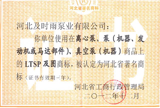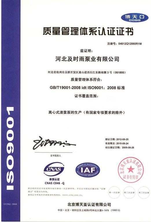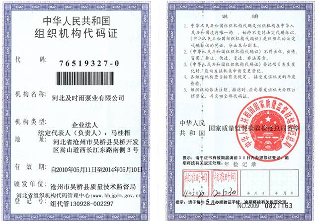 企業資質-河北及時雨泵業有限公司